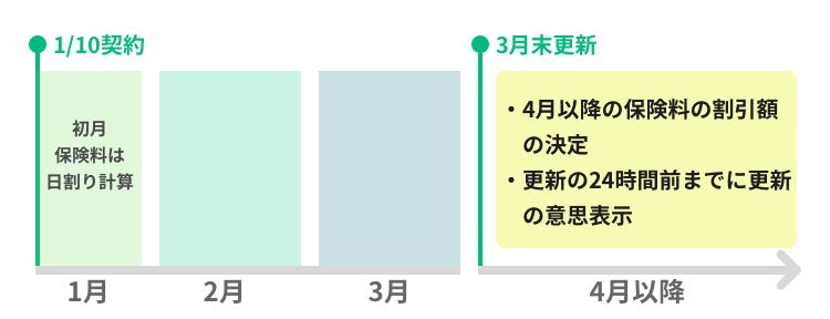 保険期間 3ヵ月(ただし、ご契約が開始した月は月の途中の開始でも 1 ヶ月と数えます)